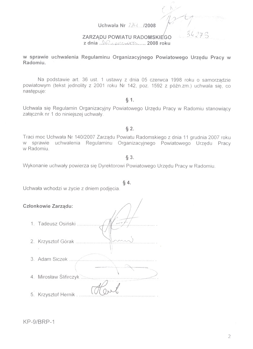 Skrócony opis: Regulamin oraz schemat organizacyjny PUP Radom